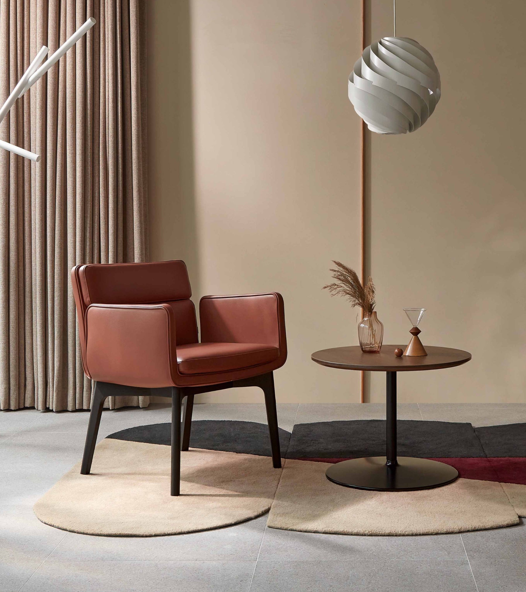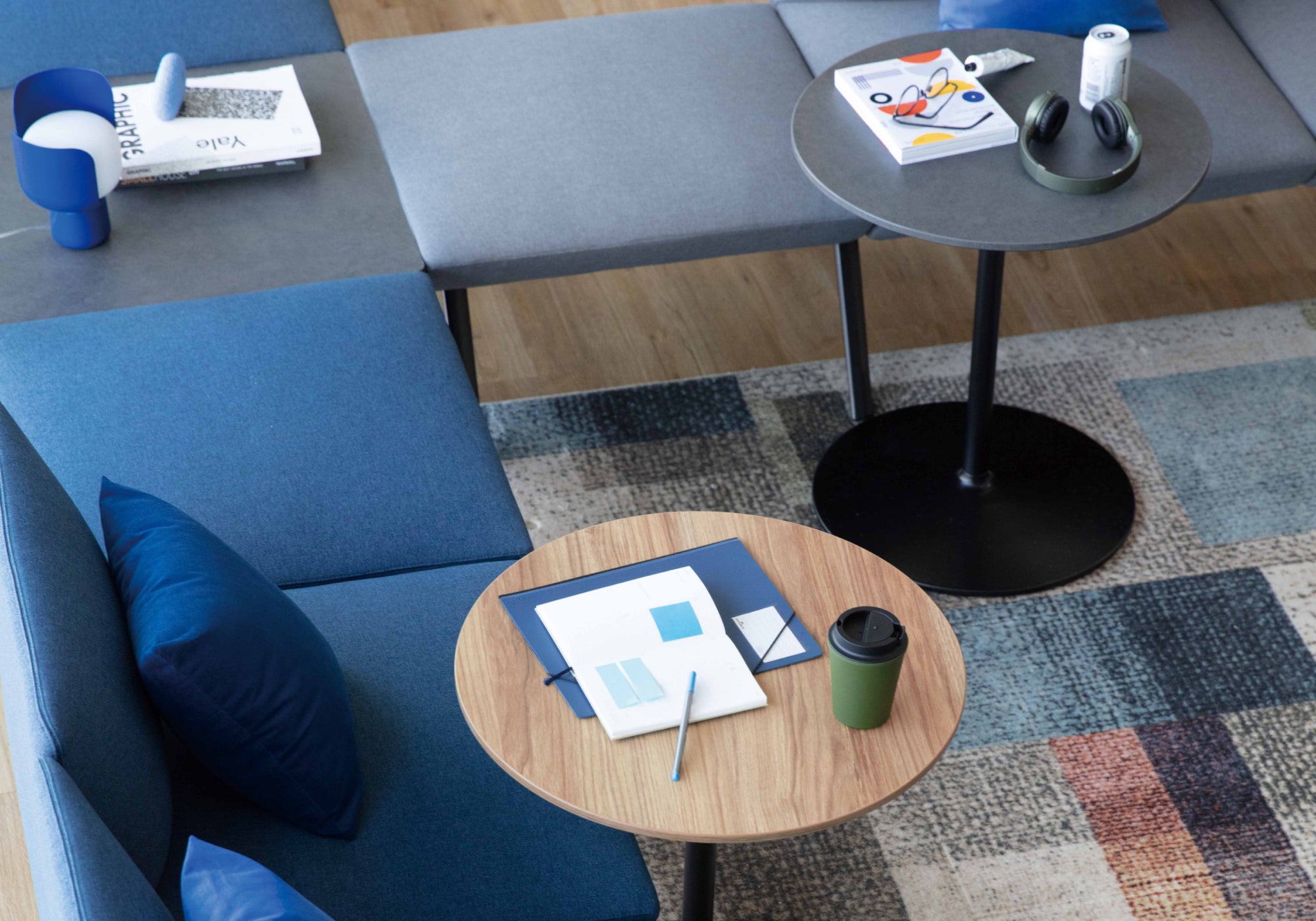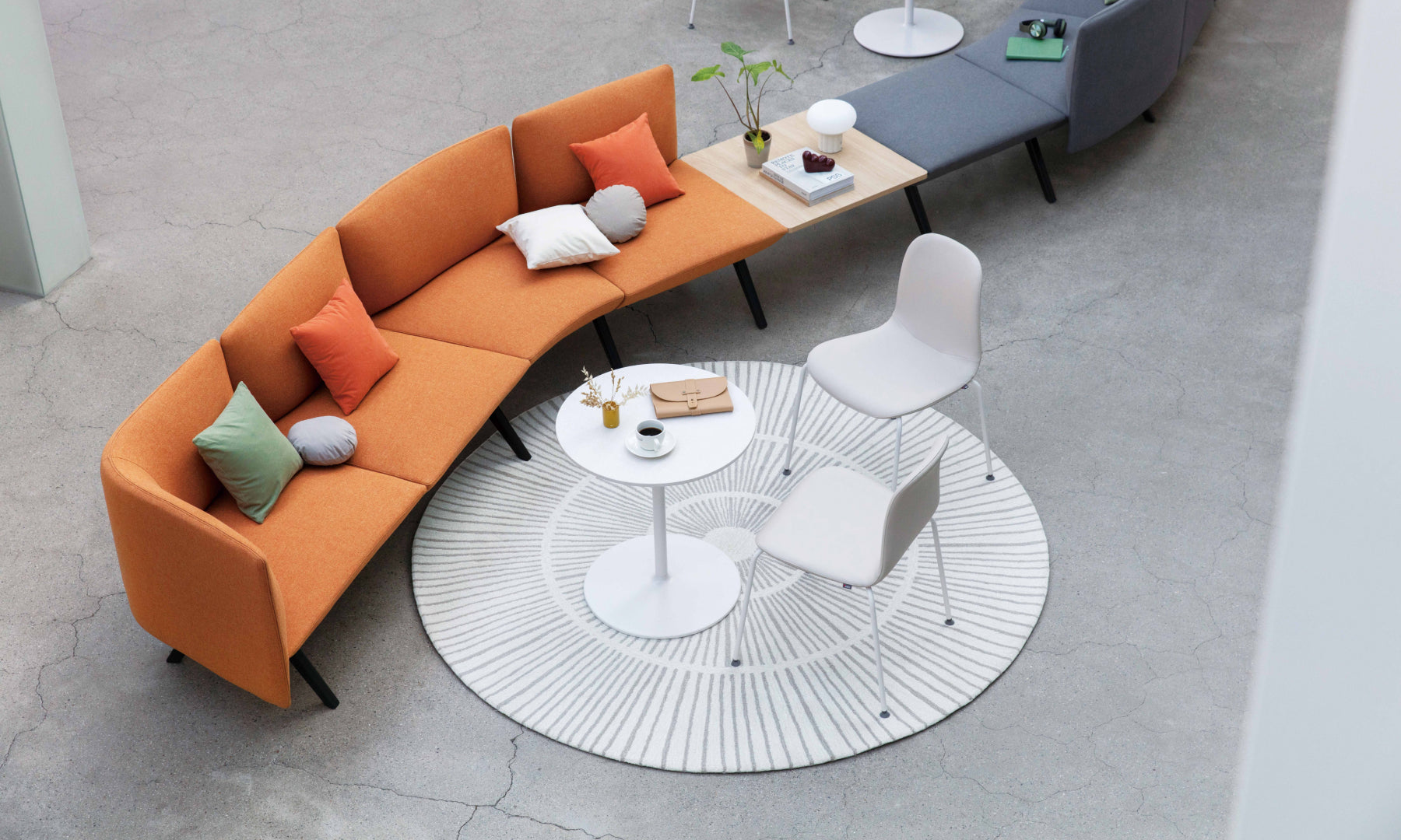 DOI is a modular table with a minimalist design and colorful finishes. It blends naturally into various public spaces such as lounges, cafeterias, and conference rooms, allowing users to spend their casual time together.