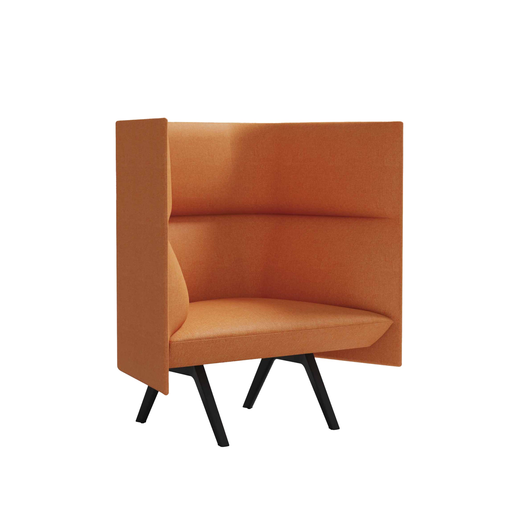 The embracing curved backrest offers a cozy seating experience, while the high-back design enhances privacy and supports focused work.
